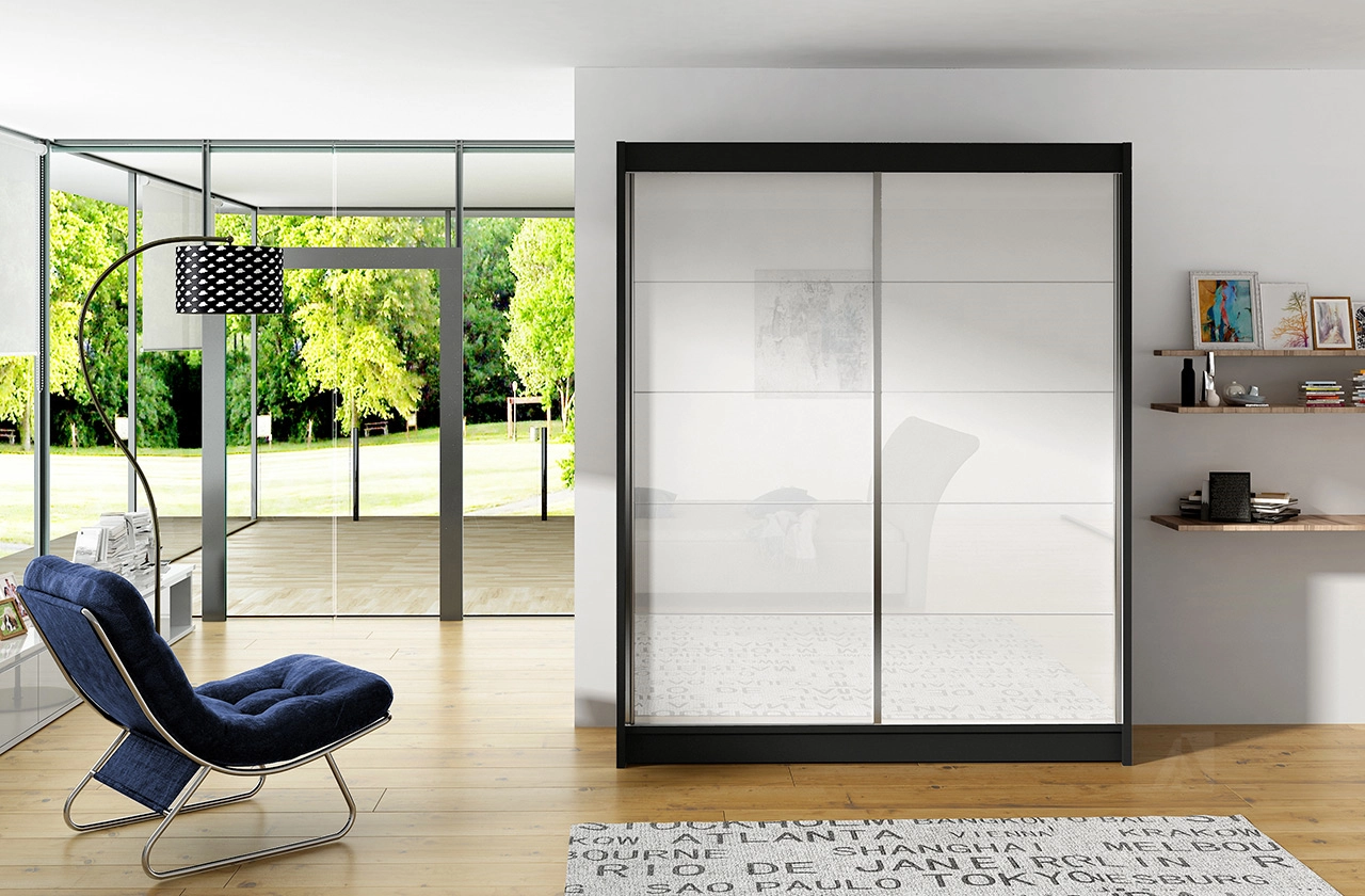 Šatní skříň DAMER I, černý mat/bílé sklo