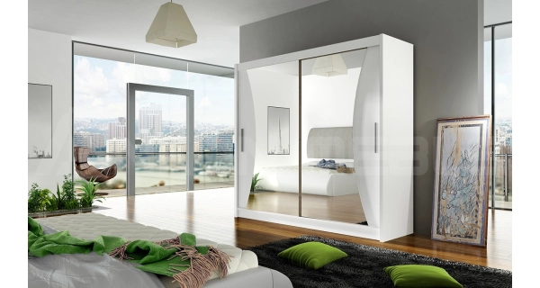 Šatní skříň GAMBA V, bílý mat/zrcadlo