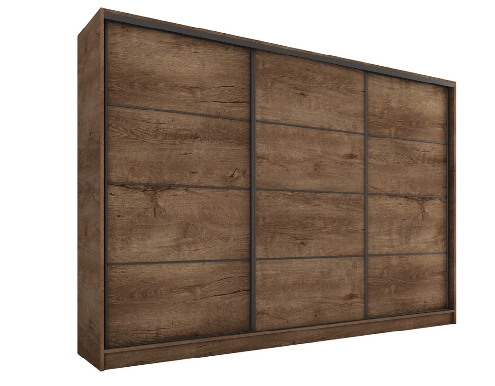 Šatní skříň HARAZIA 250 bez zrcadla, se 4 šuplíky a 2 šatními tyčemi, dub lefkas