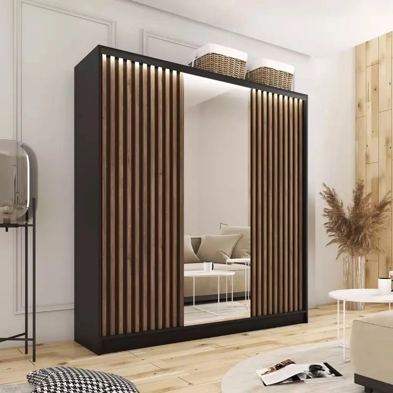 Šatní skříň s posuvnými dveřmi a zrcadlem.