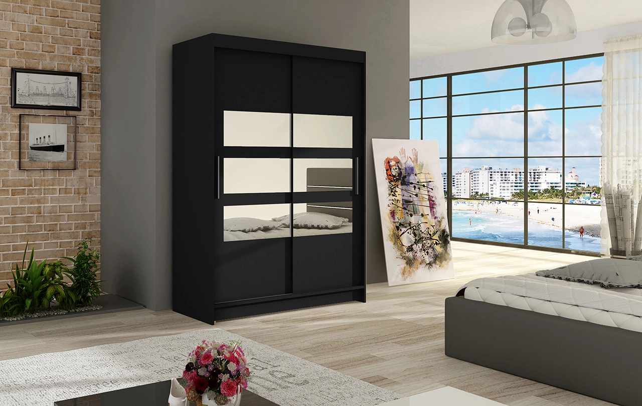 Šatní skříň KENDI V, černý mat/zrcadlo