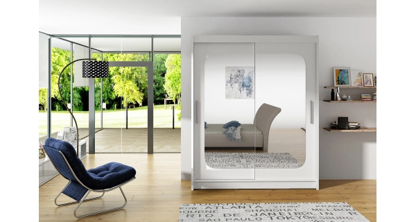 Šatní skříň TABARI XII, bílý mat/zrcadlo