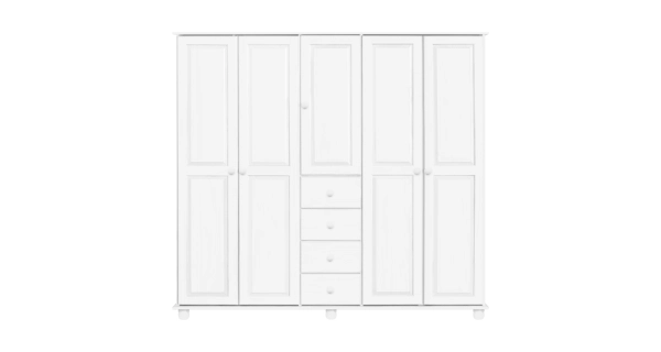 Skříň BRIGGS 5D4S, masiv borovice, bílý lak