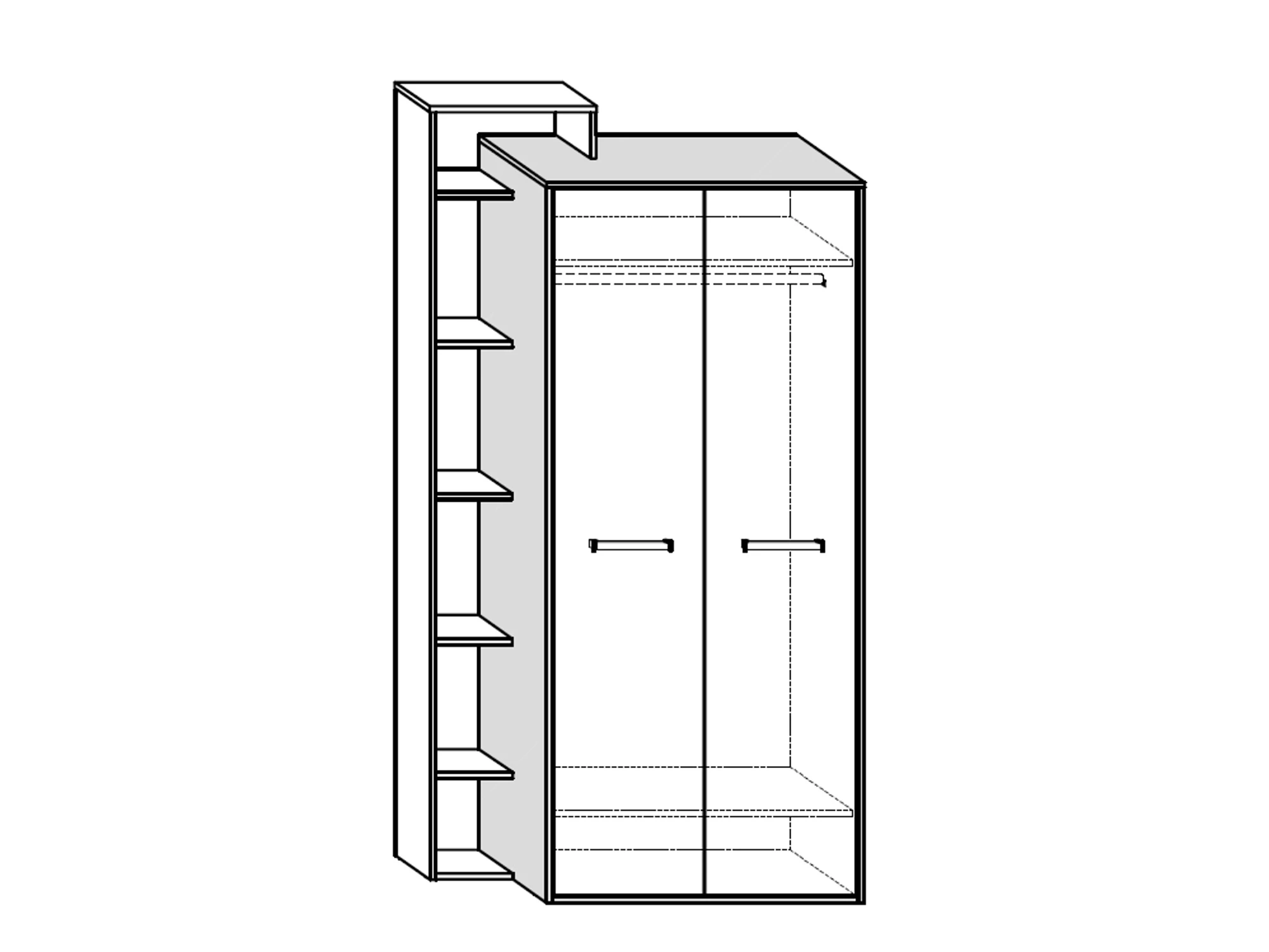 Skříň  Barva: dub burgundský/bílá Provedení: levé Rozměr (šxvxh): 105 x 203 x 59 cm Materiál: LTD, ABS hrany Tiché zavírání. Dodáváno v demontu.