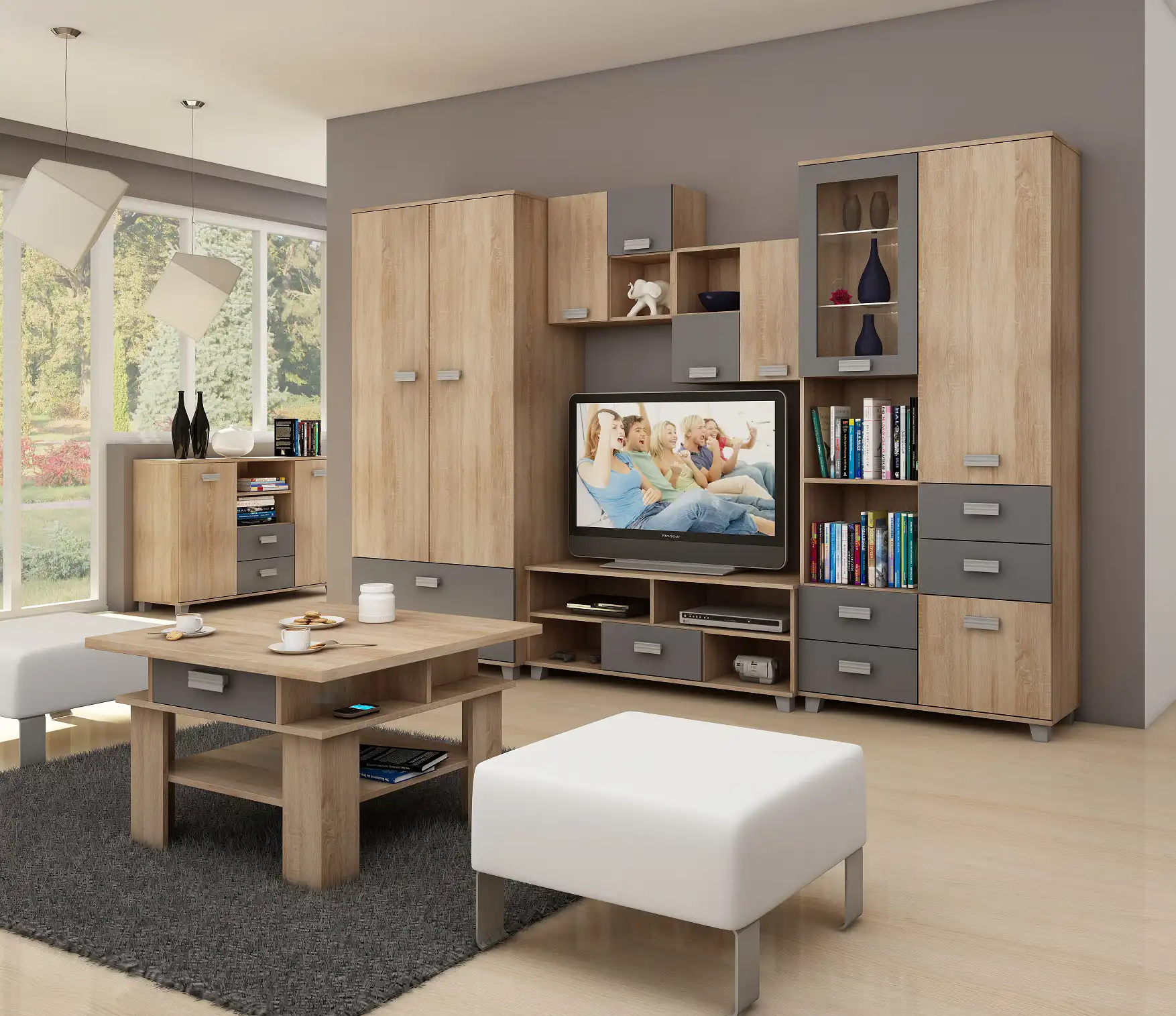Šatní skříň s výklopnými dvířky ve spodní části Barva: dub sonoma/grafit Materiál: lamino 16 mm Rozměry (šxvxhl): 80 x 200 x 54 cm Dodává se v demontu.