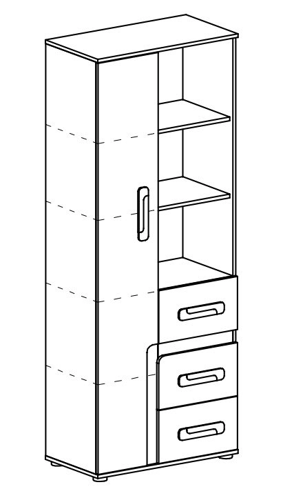 Skříň kombinovaná, antracit/bílá. Skříň (regál) je ze sektorové řady, která se vyznačuje netradičním zpracováním barev a originalitou úchytů. Tento styl nábytku zaujme každou mladší generaci. Skříň je