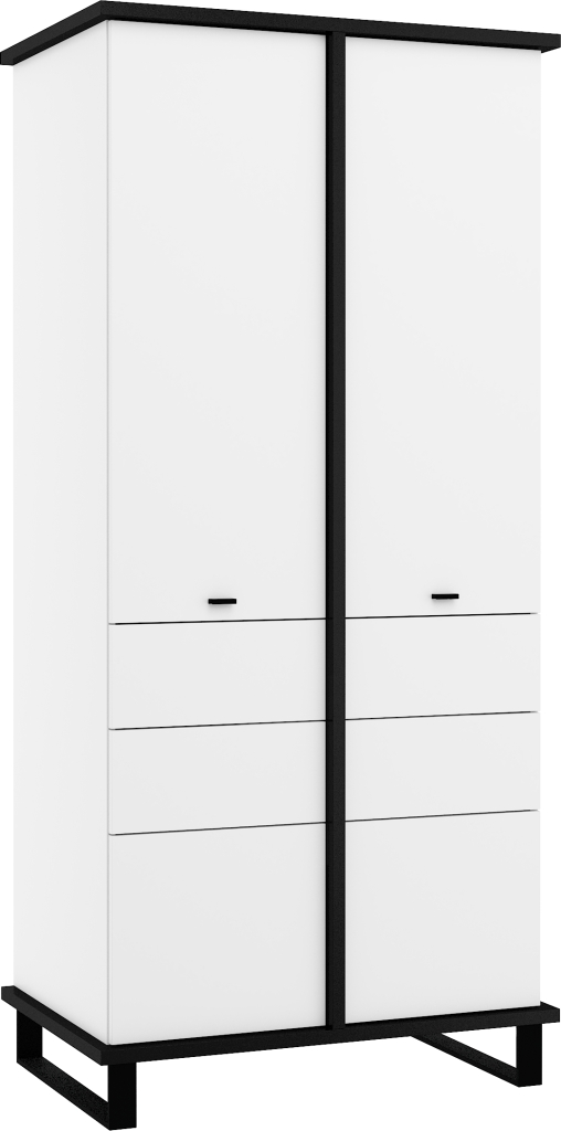 Šatní skříň ze sektorové řady Skříň obsahuje 6 polic a 2 šatní tyče. Rozměry (šxvxh): 90 x 195 x 60 cm Barva: černá/bílá Materiál: lamino tloušťky 16 a 25 mm s ABS hranami Materiál nožek: černý kov - výška 12 cm Úchyty: černá barva Dodáváno v demontu
