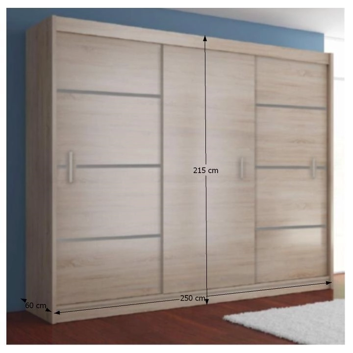 Skříň RINAME 250 s posuvnými dveřmi, dub sonoma/šedá