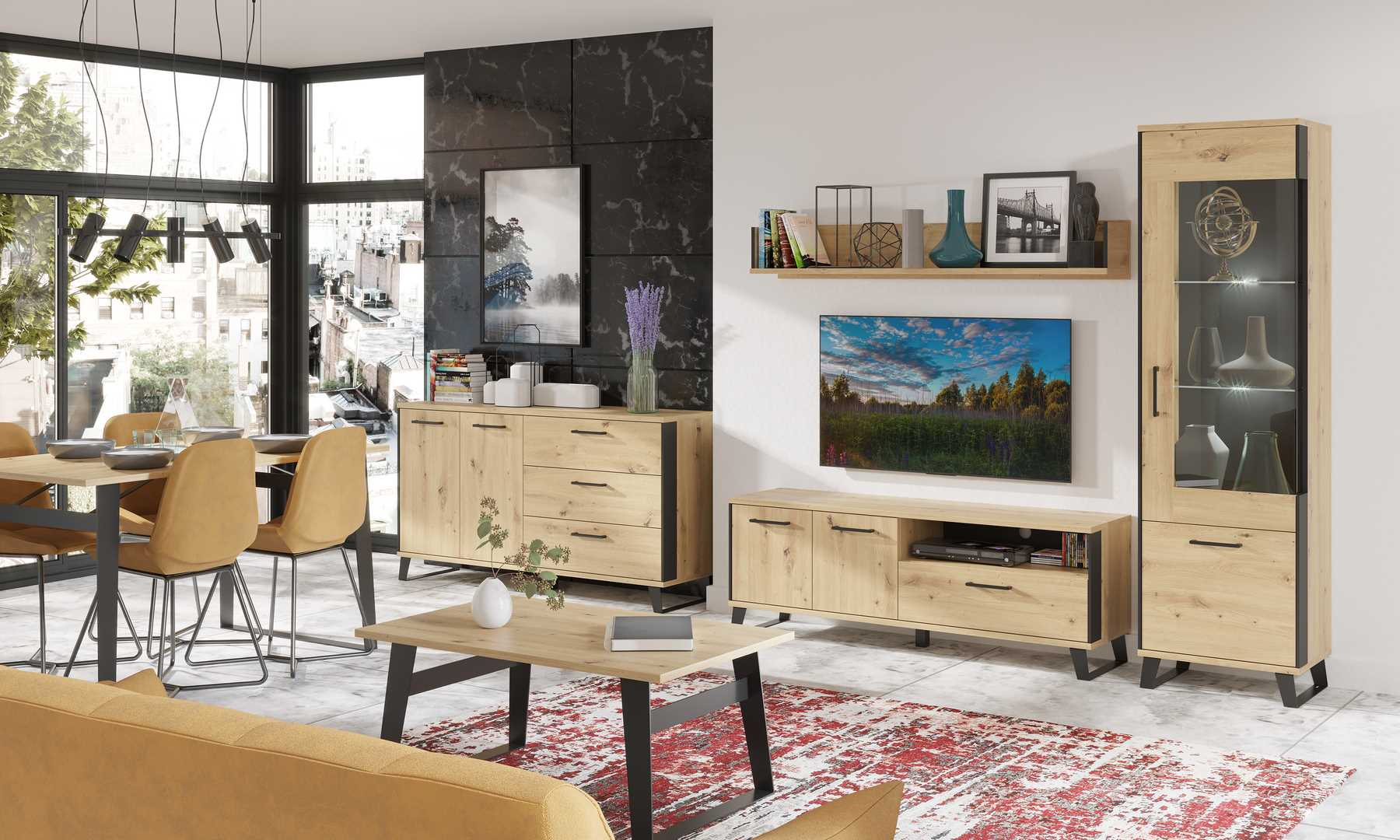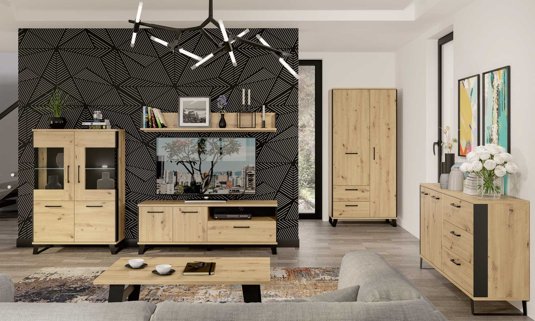 Skříň SOMONI, dub artisan/černá