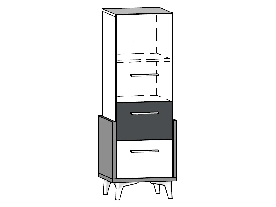 Skříň má dvě zásuvky a skříňku s poličkou uvnitř