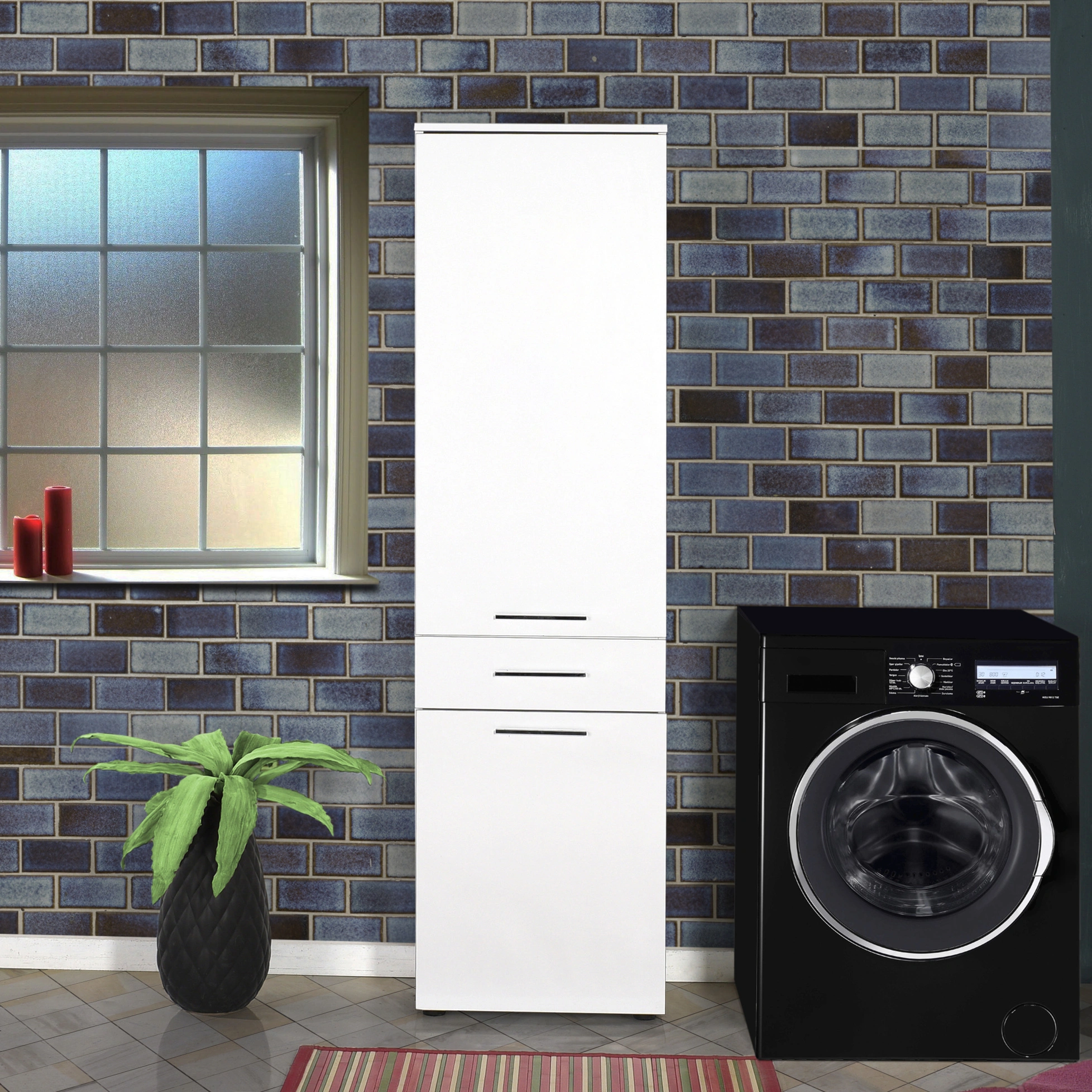 Skříňka TRISUL s košem na prádlo/potraviny, lesklý bílý lak