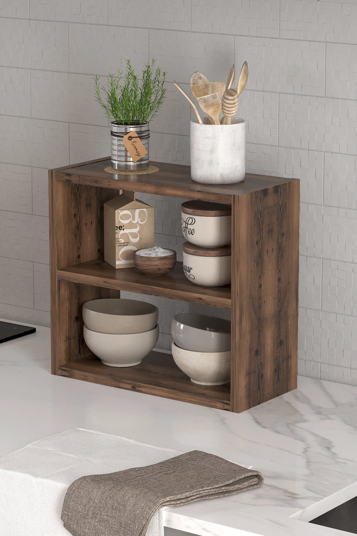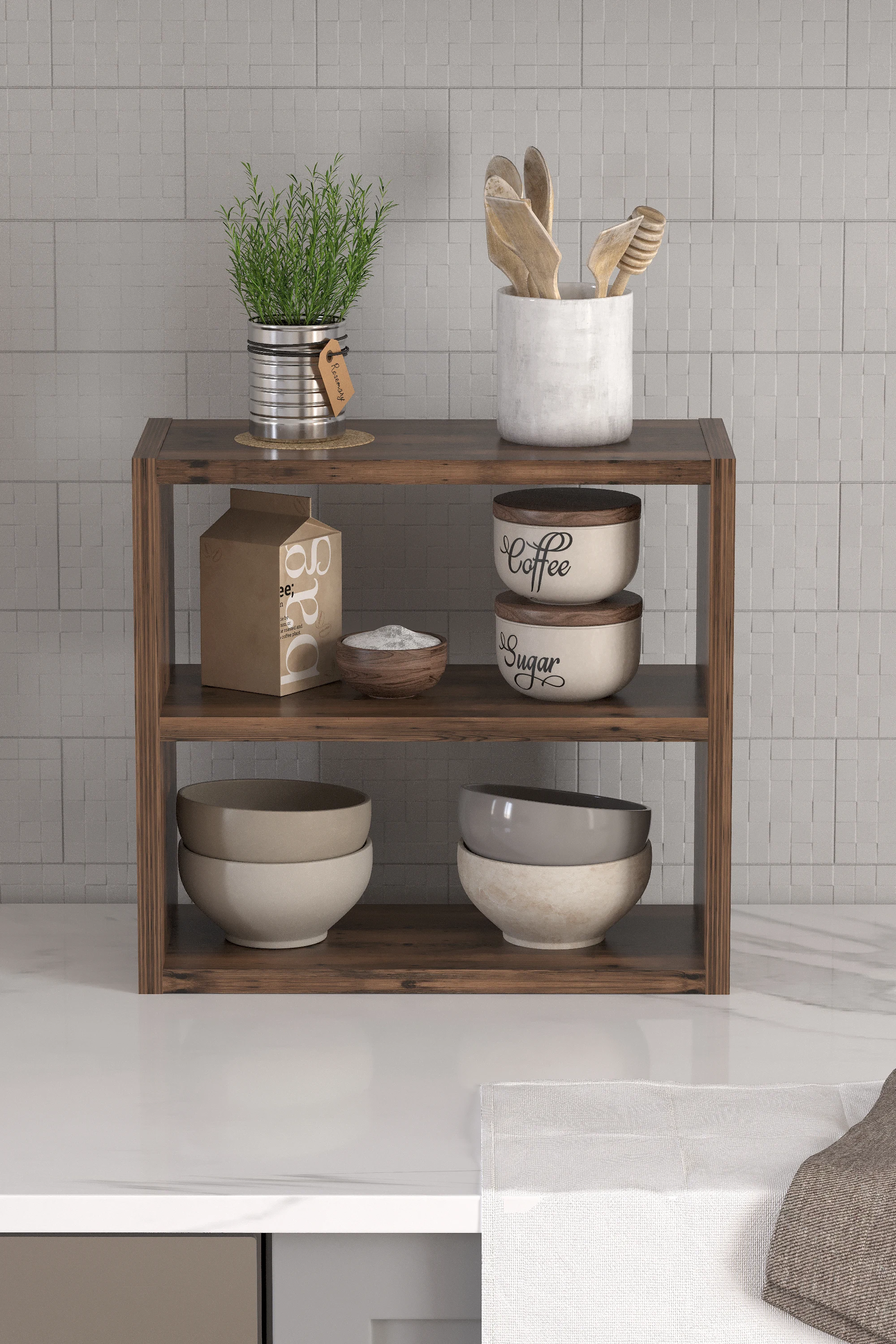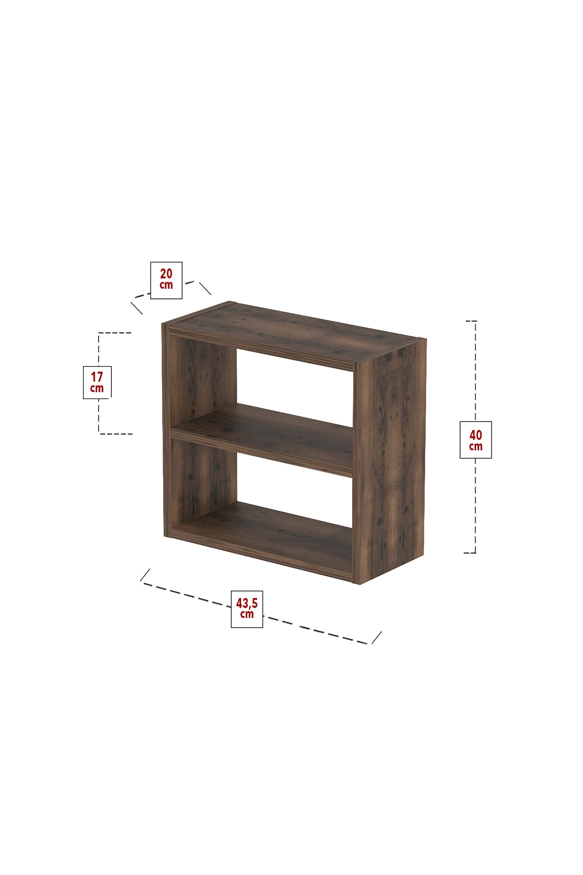 Stojan na kořenky Rozměry (šířka x výška x hloubka): 43,5 x 40 x 20 cm Vzdálenost mezi policemi: 17 cm Materiál: lamino Barva: lydia Dodáváno v demontu.