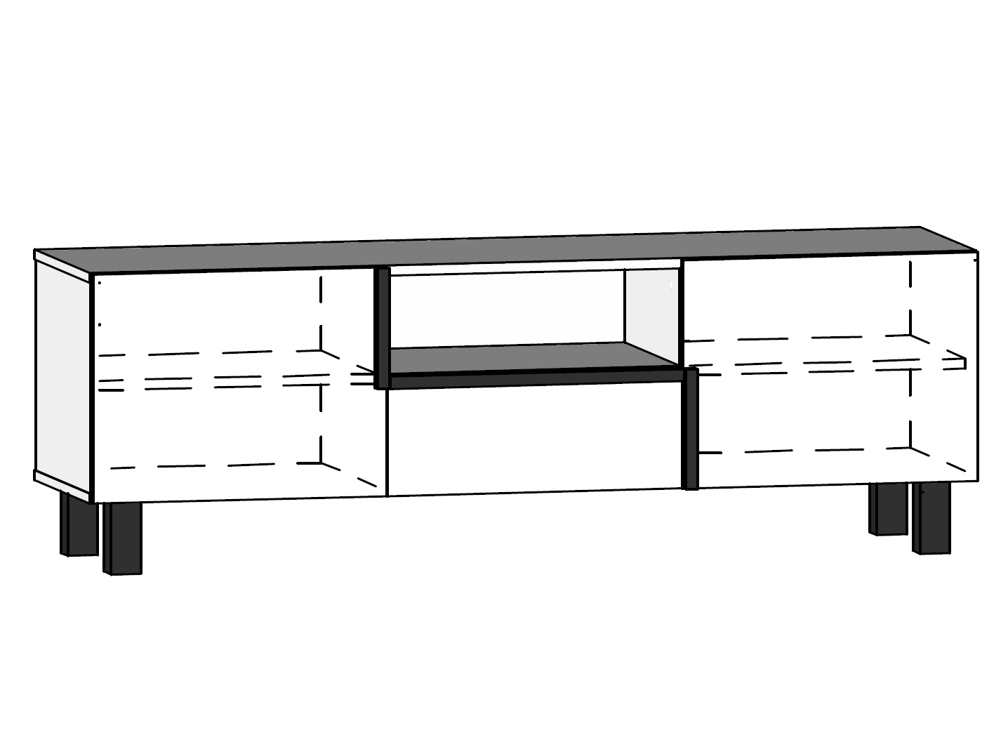 TV stolek je vybavený zásuvkou a dvěma skříňkami s jednou poličkou uvnitř. Navíc disponuje i policovým prostorem.