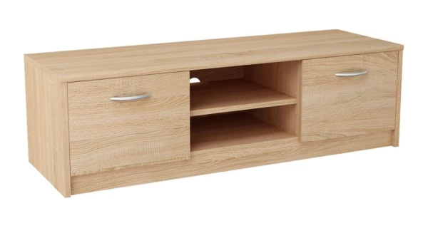 TV stolek Dvoudveřový RTV stolek v moderním provedení. Korpus i dvířka jsou z kvalitní LTD v barvě dub sonoma. Lamino je odolné vůči vysokým teplotám, poškrábání a nárazům, hraněné ABS páskou. Jasně viditelná struktura dřeva.