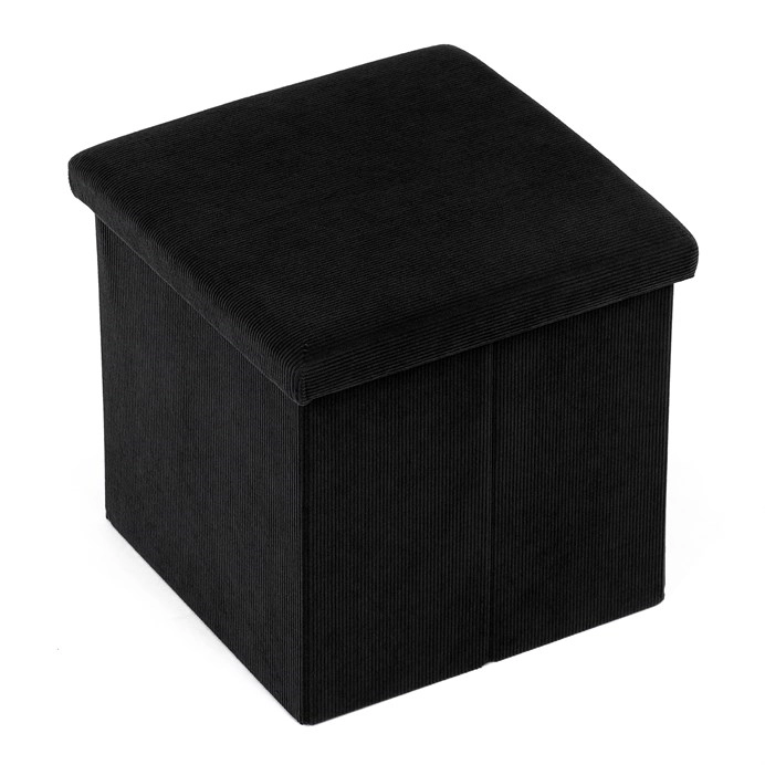 Taburet BELBELIV s úložným prostorem, černá manšestrová látka