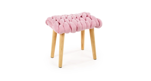 Stylový taburet čalouněný příjemnou propletenou látkou v odstínu růžové