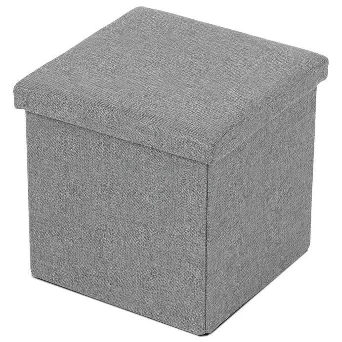 Taburet JORXERZAN s úložným prostorem, látka šedá