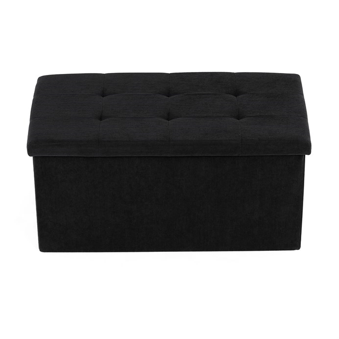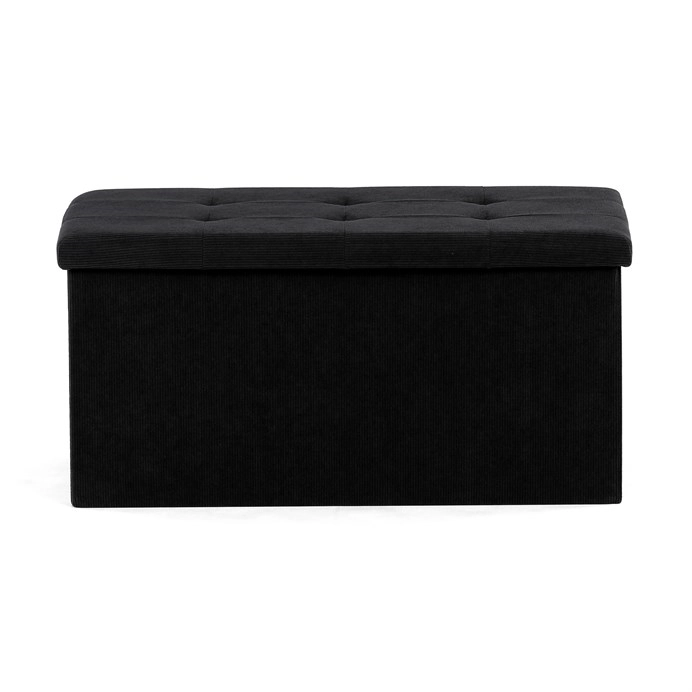 Taburet YORQUINKAL s úložným prostorem, černá manšestrová látka
