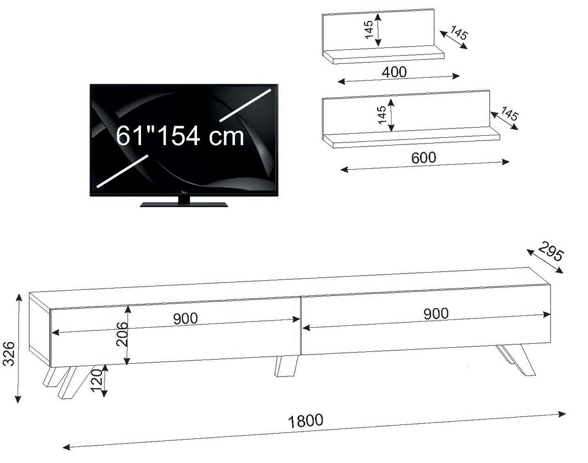 Televizní stolek ALBORZ se dvěma policemi, sapphire