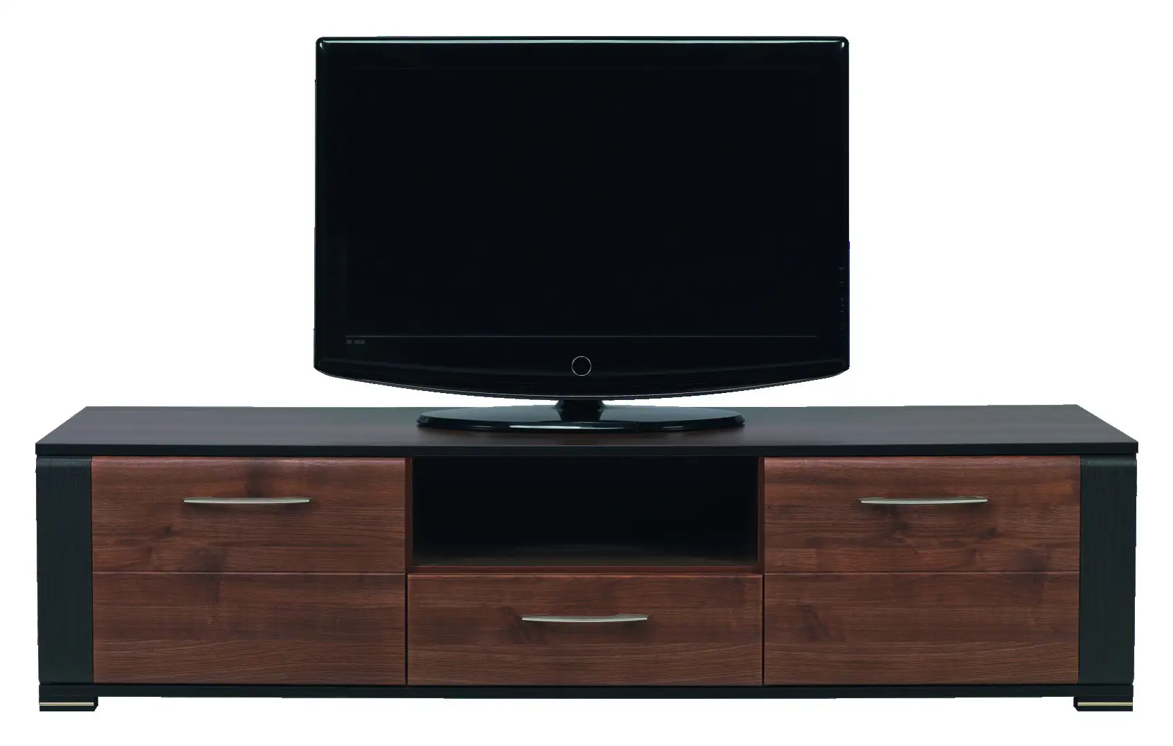 Televizní stolek Barva: korpus - ořech, dvířka - ořech/wenge Materiál: korpus - lamino, dvířka - MDF Rozměry (šxvxh): 159,5 x 40 x 49,5 cm Dodáváno v demontu.