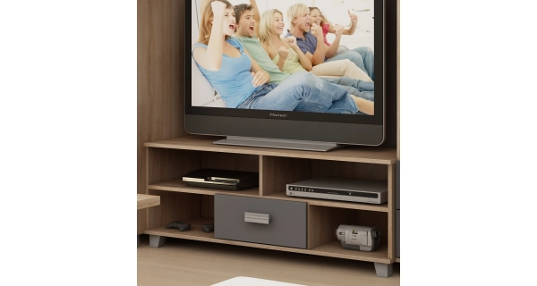 Televizní stolek se šuplíkem Barva: dub sonoma/grafit Materiál: lamino 16 mm Rozměry (šxvxhl): 120 x 47 x 47 cm Dodává se v demontu. Záruka 5 let.