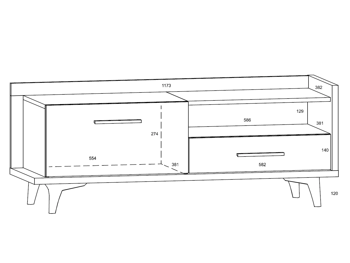 Televizní stolek KNUT 1D1S, dub burgundský/bílá/černá, 5 let záruka