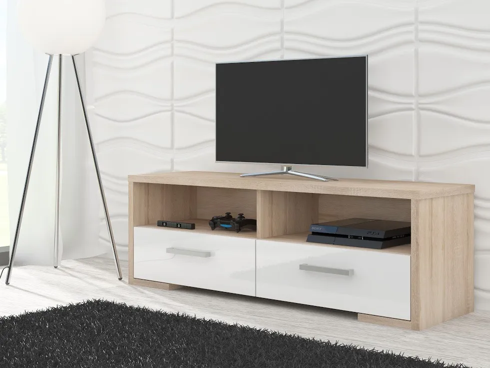 Televizní stolek PENONG, dub sonoma/bílý lesk
