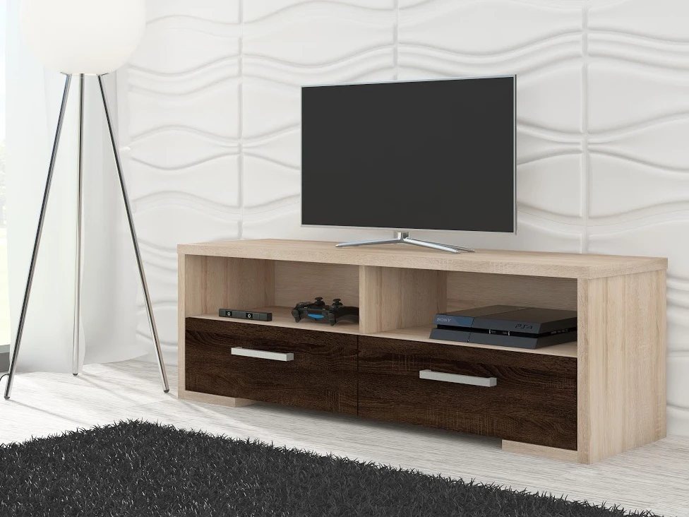 TV stolek TV stolek má 2 dvířka. Barva: dub sonoma/dub sonoma tmavý Rozměry (šxvxh): 120 x 41 x 40 cm Materiál: LTD 16 mm Dodání v demontu.
