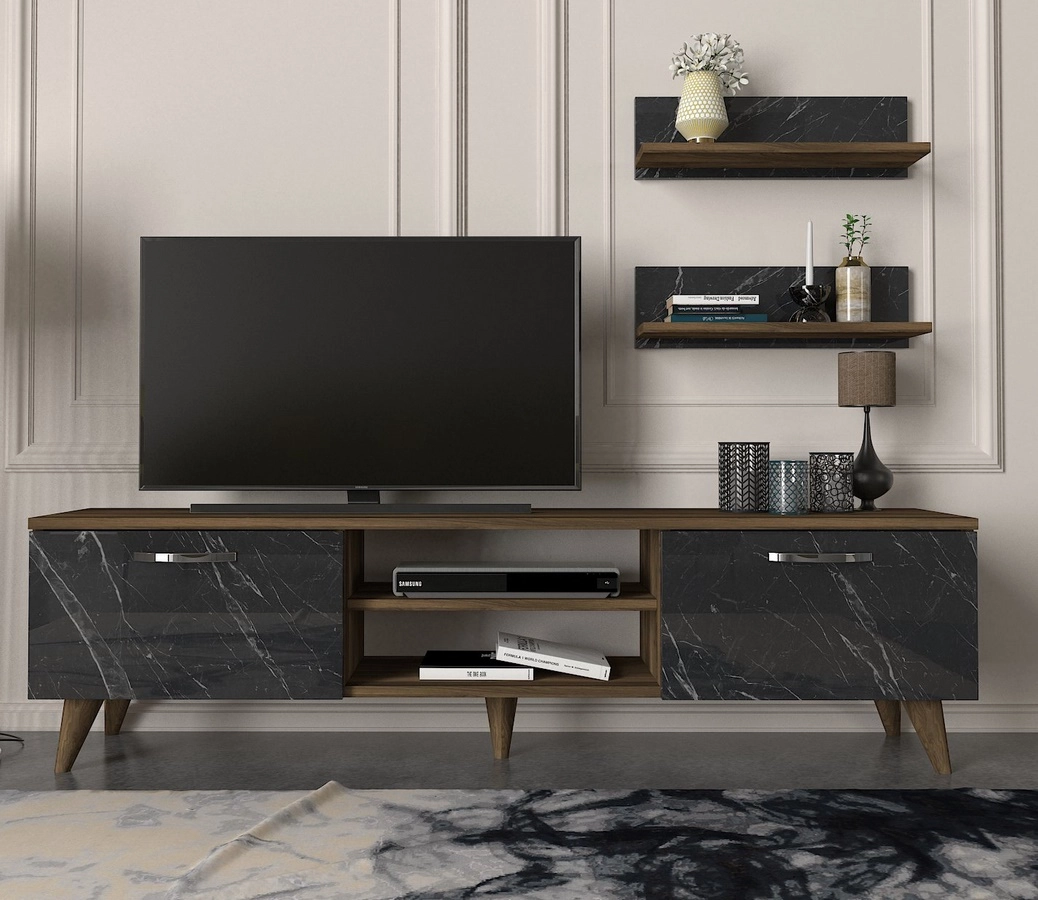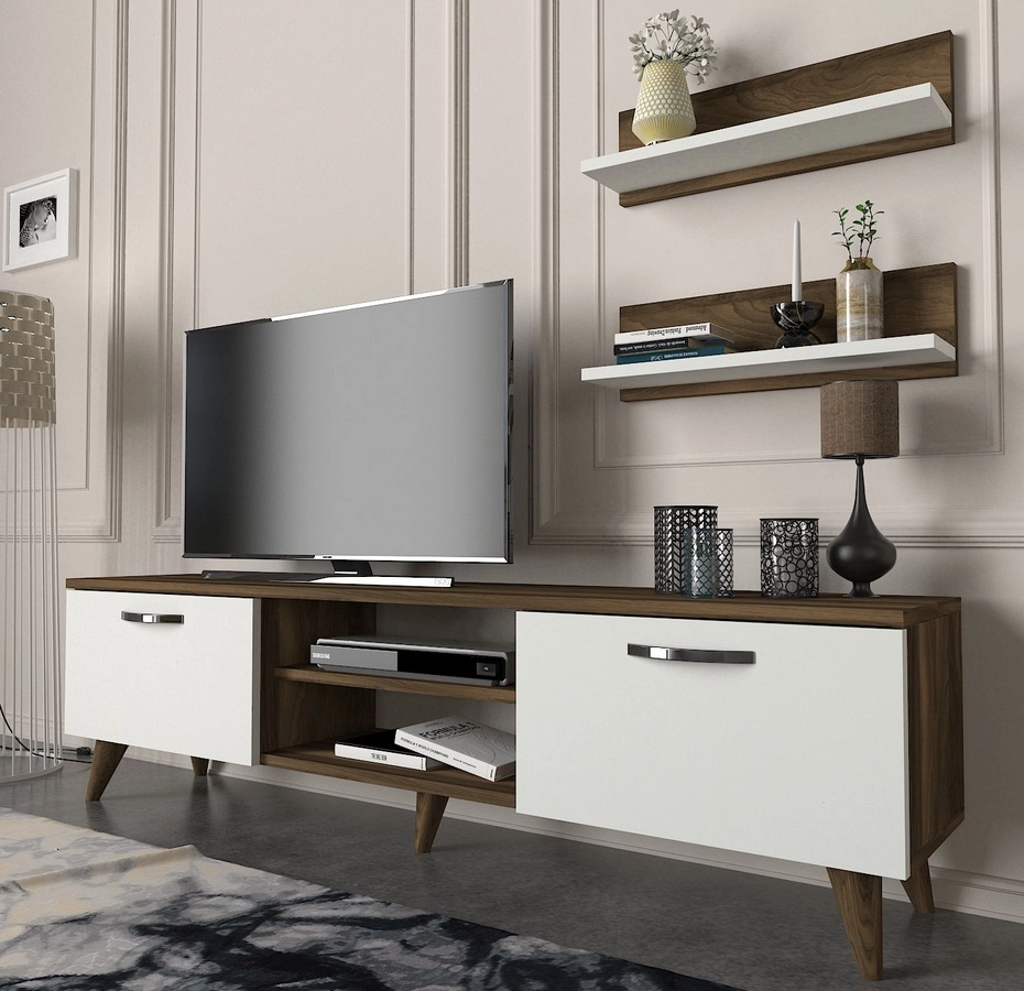 Televizní stolek s policemi GALAGO, vlašský ořech/bílá