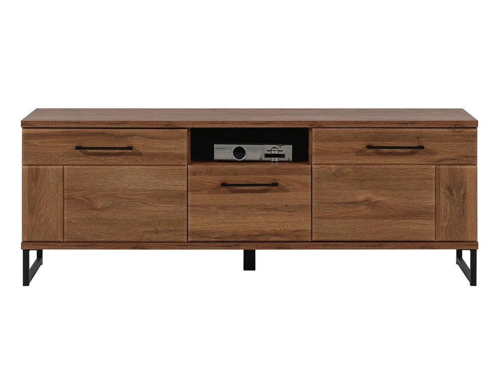 Televizní stolek Barva: dub april Rozměry (šxvxh): 150,5 x 54 x 40 cm Stolek má dvoje dvířka a jednu zásuvku. Materiál: lamino, MDF, nožky - kov Dodání v demontu. Záruka 24 měsíců.
