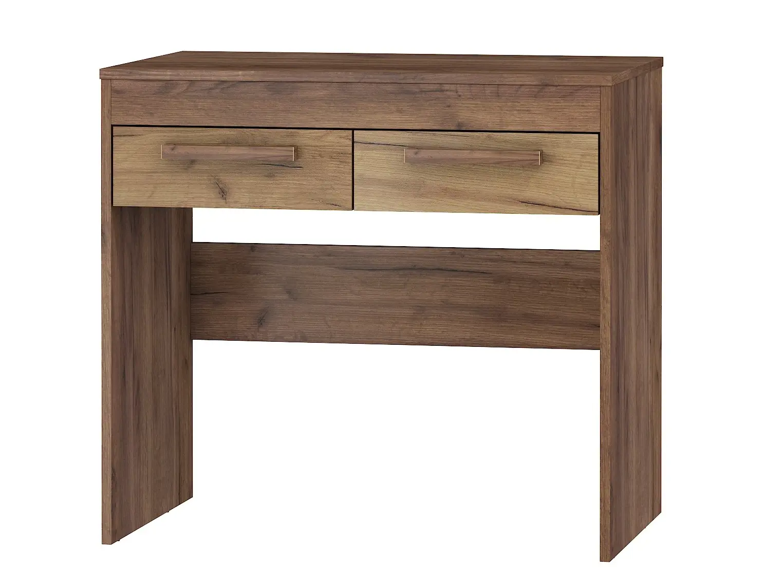 Toaletní stolek se dvěma zásuvkami Barva: craft tobaco/craft zlatý Rozměr (šxvxh): 80 x 80 x 36 cm Materiál: LTD, ABS hrany Tiché zavírání. Dodáváno v demontu.