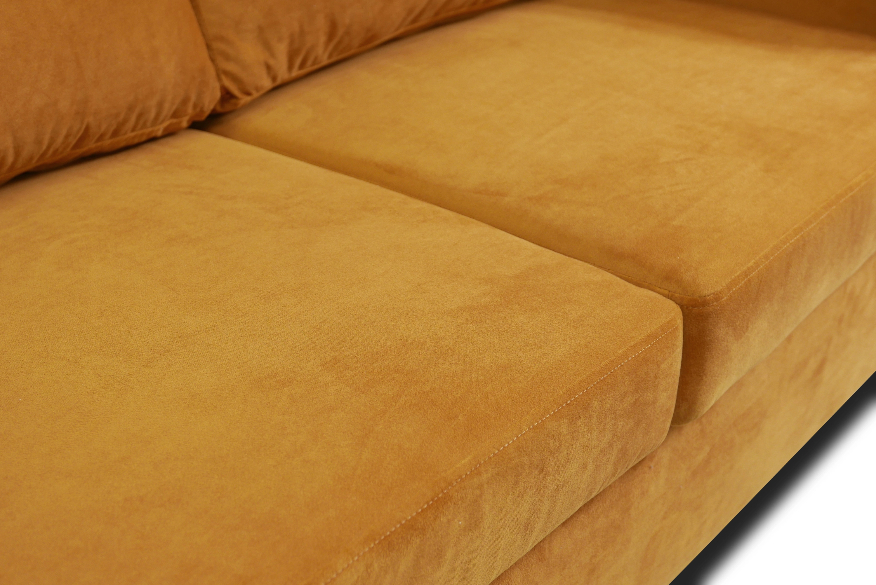 Součástí jsou polštáře se zapínáním na zip. Pohovka bez úložného prostoru. Celočalouněný, vhodný do prostoru.