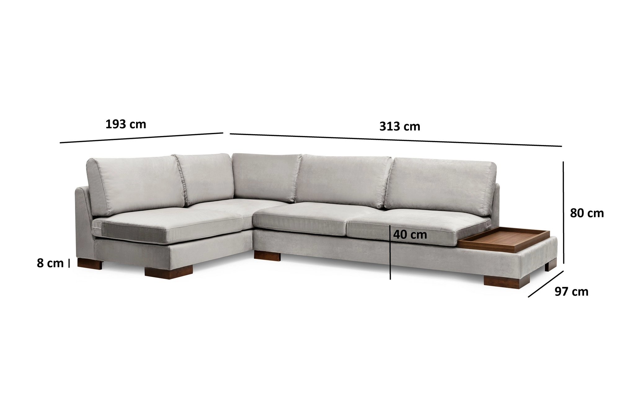 Rohová sedačka DARIUS s taburetem, levá, světle šedá