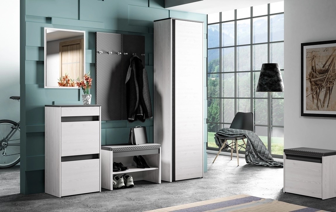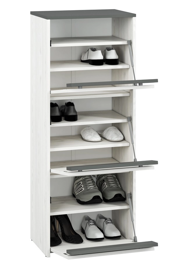 Botník se třemi výklopnými dvířky nad sebou. Rozměr (šxvxh): 50 x 125 x 34 cm Barva: borovice sněžná/antracit Materiál: LTD (lamino) Dodáváno v demontu.