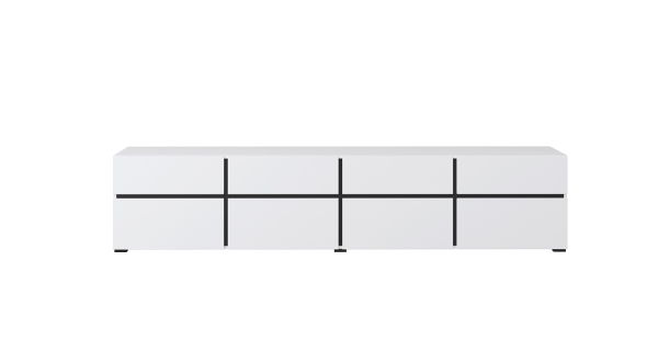 Televizní stolek- bezúchytový systémBarva: bílá/černáMateriál: laminoRozměry (šxvxh): 225 x 48 x 40 cmDodáváno v demontu