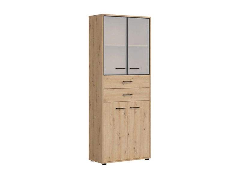 Vitrína BELLARMINO 2D2W2S, dub artisan/černý mat