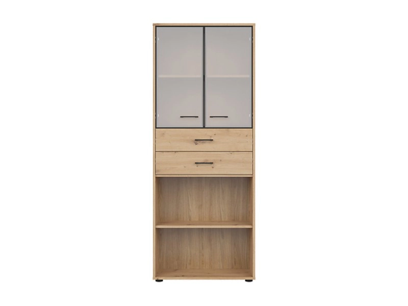 Vitrína BELLARMINO 2W2S/200, dub artisan/černý mat