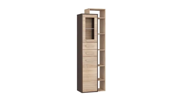 Vitrína  Barva: dub sonoma tmavý/dub sonoma Provedení: pravé Rozměr (šxvxh): 64 x 203 x 41 cm Materiál: LTD, ABS hrany, sklo Tiché zavírání. Dodáváno v demontu.