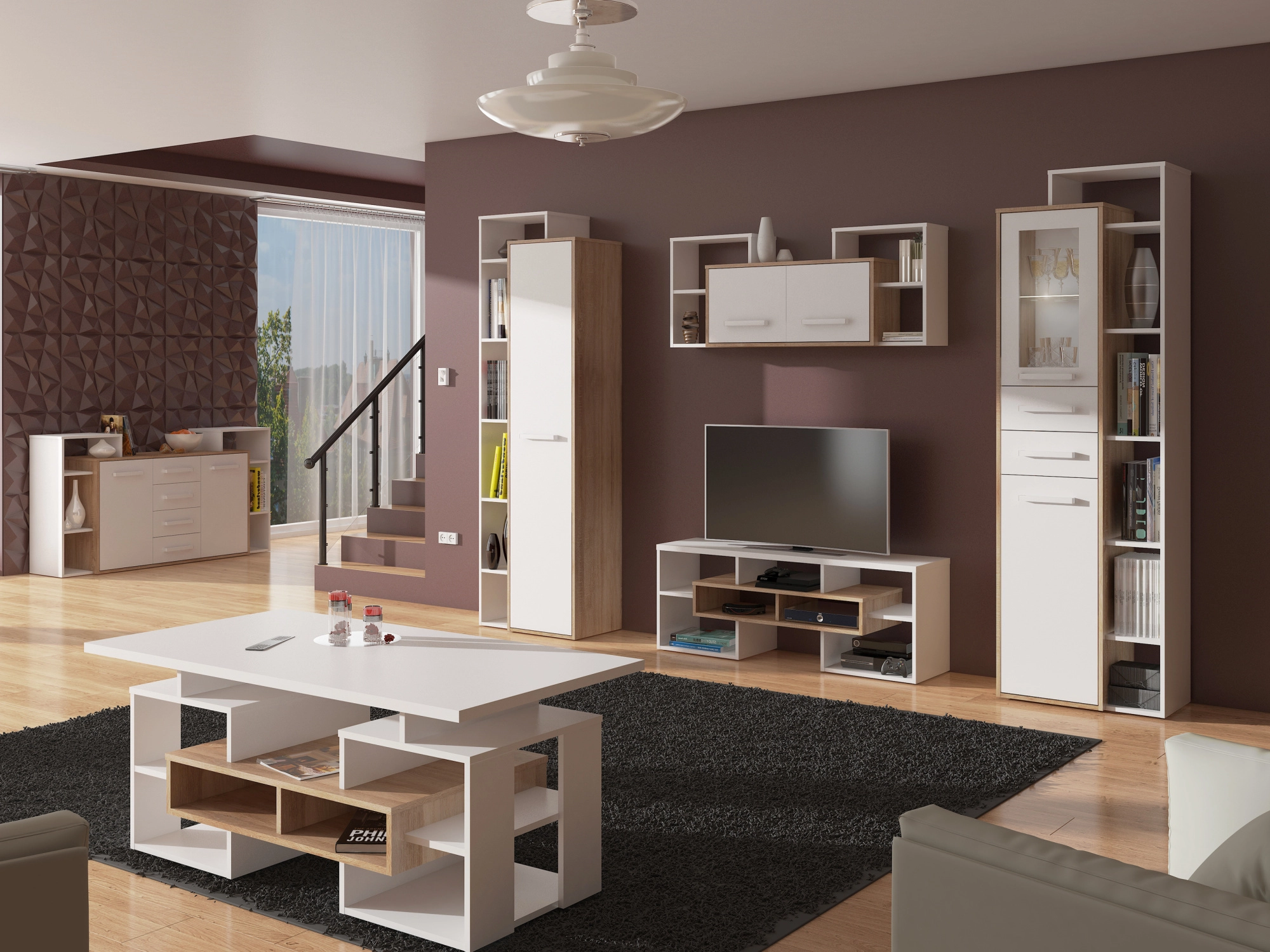Vitrína  Barva: dub sonoma/bílá Provedení: pravé Rozměr (šxvxh): 64 x 203 x 41 cm Materiál: LTD, ABS hrany, sklo Tiché zavírání. Dodáváno v demontu. Záruka 5 let.