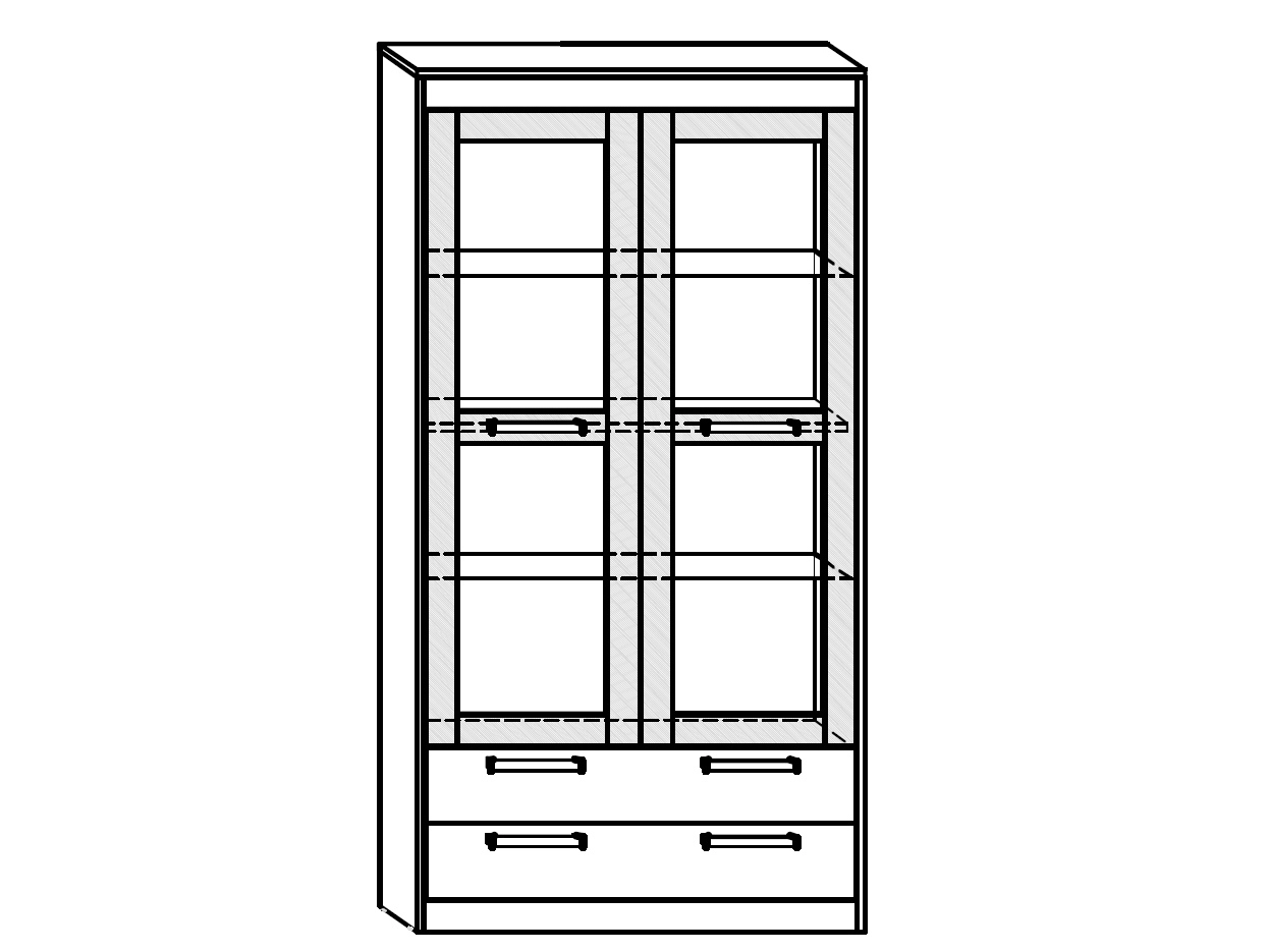 Vitrína se dvěma zásuvkami Barva: dub artisan/bílý lesk Rozměr (šxvxh): 100 x 193 x 36 cm Materiál: LTD, ABS hrany, sklo Tiché zavírání. Dodáváno v demontu. Záruka 5 let.