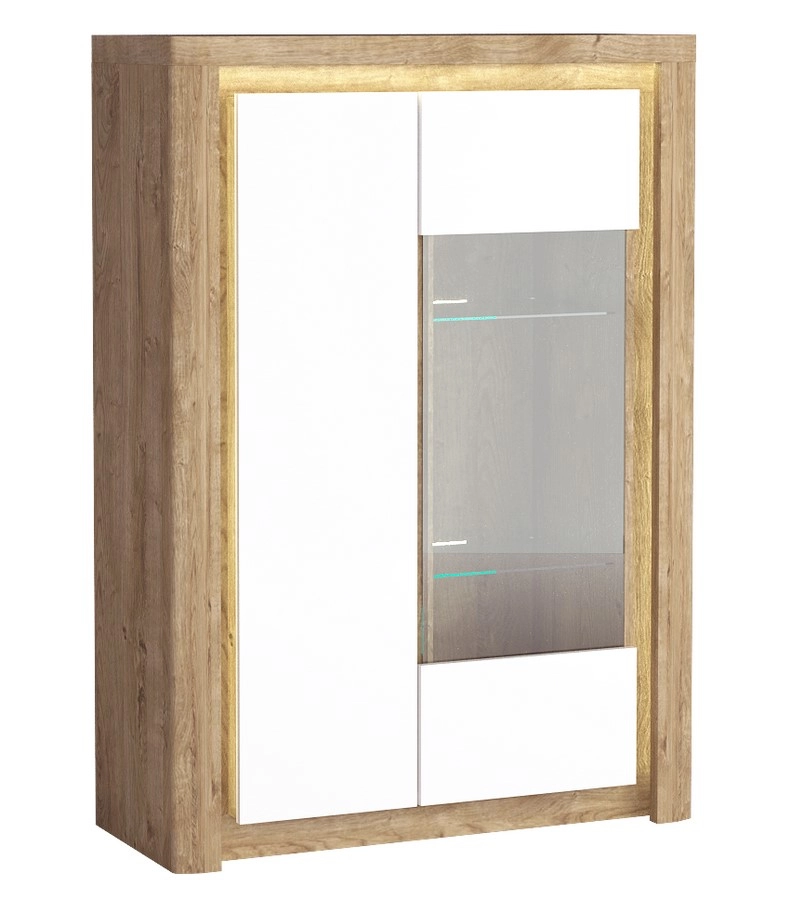 Vitrína nízká FILIKA, dub ribbeck/bílý lesk