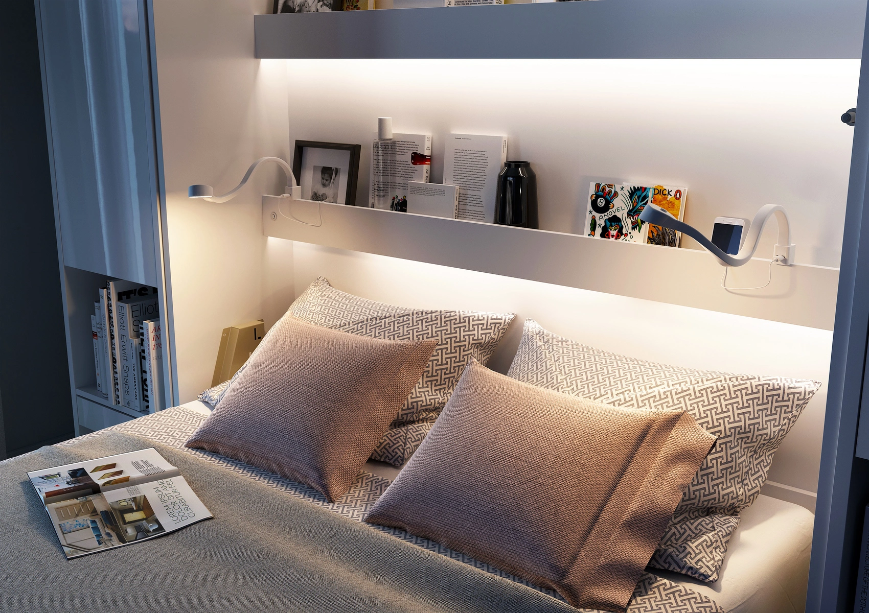 Výklopná postelPneumatický mechanismus sklápění postele zajistí bezpečné otevírání a je doplněn SOFT CLOSE systémem tichého zavírání. Tento výjimečný systém Vám umožní manipulaci pouze jedním prstem. Když