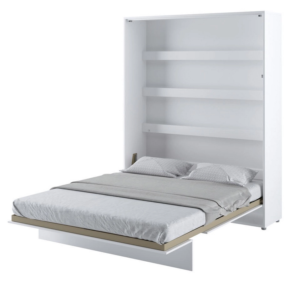 Výklopná postel Se sklápěcí postelí Vás už nebude trápit malý prostor Vaší domácnosti. Díky stabilní konstrukci zaručuje pohodlný odpočinek. Pneumatický mechanismus sklápění postele zajistí bezpečné otevírání a je doplněn SOFT CLOSE systémem tichého zavírání. Tento výjimečný systém Vám umožní manipulaci pouze jedním prstem. Uvnitř skříně jsou praktické police na knížky nebo dekorační předměty, vše máte na dosah ruky. Maximální zatížení polic je 5 kg. Když je postel sklopená, vypadá jako běžná skříň. Vyklopením se vytáhne celá šířka postele. Rám je nutno přišroubovat ke zdi. Nosnost postele je do 250 kg. Rošt postele je v ceně, matrace není součástí, je potřeba ji dokoupit. Doporučujeme velikost 160 x 200 x výšku do 18 cm. Materiál: kvalitní lamino s ABS hranou/MDF Lamino je odolné proti poškrábání, poškození, vlhkosti a vysokým teplotám. Rozměry (šxvxh): 171 x 217 x 46-228 Po sklopení postele vzniká prostor pod postelí o výšce 20,4 cm Barva:bílá LED osvětlení není součástí Dodáváme v demontu.