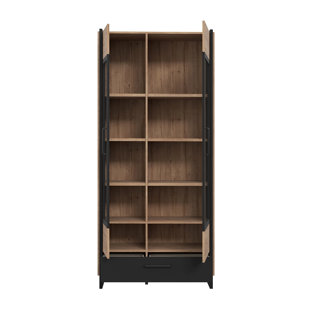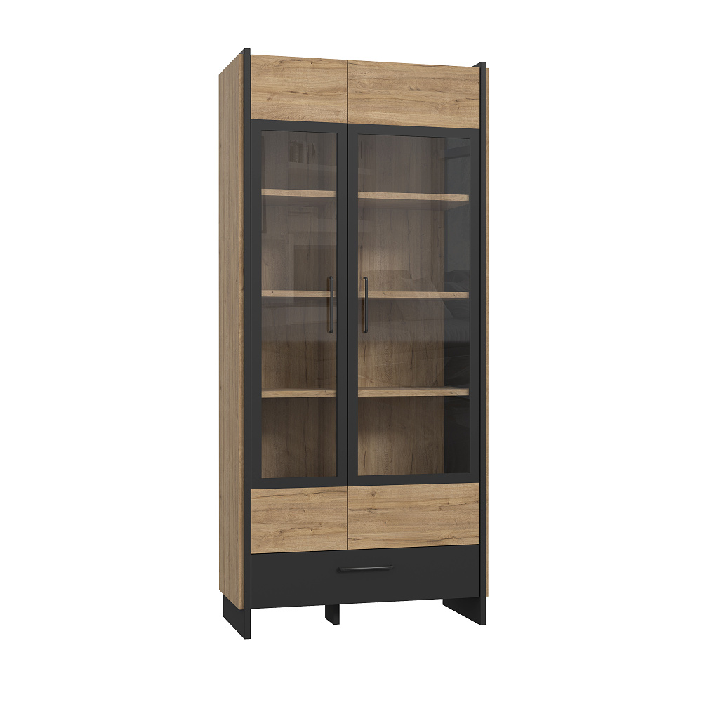 Vysoká vitrína EVIA, dub waterford/černá, 5 let záruka