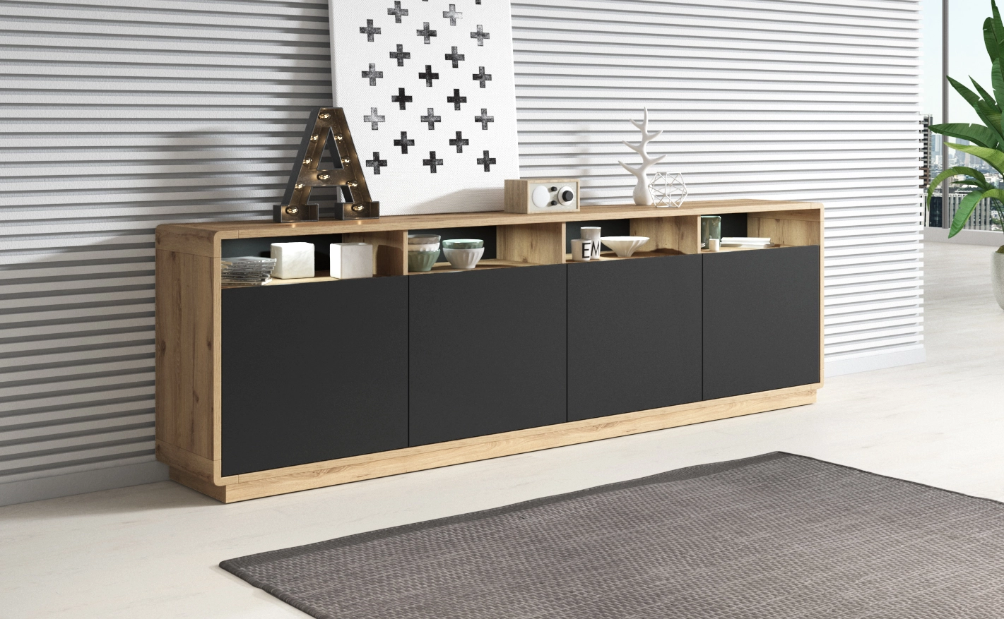 ZACARRIA komoda čtyřdvéřová, dub taurus/černý supermat