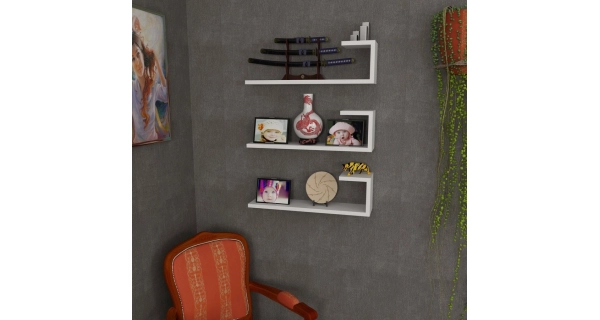 Závěsné police (3 ks) jsou vyrobeny z kvalitního lamina o tl.18 mm hraněné PVC páskou, odolného proti poškrábání v barvě matná bílá.