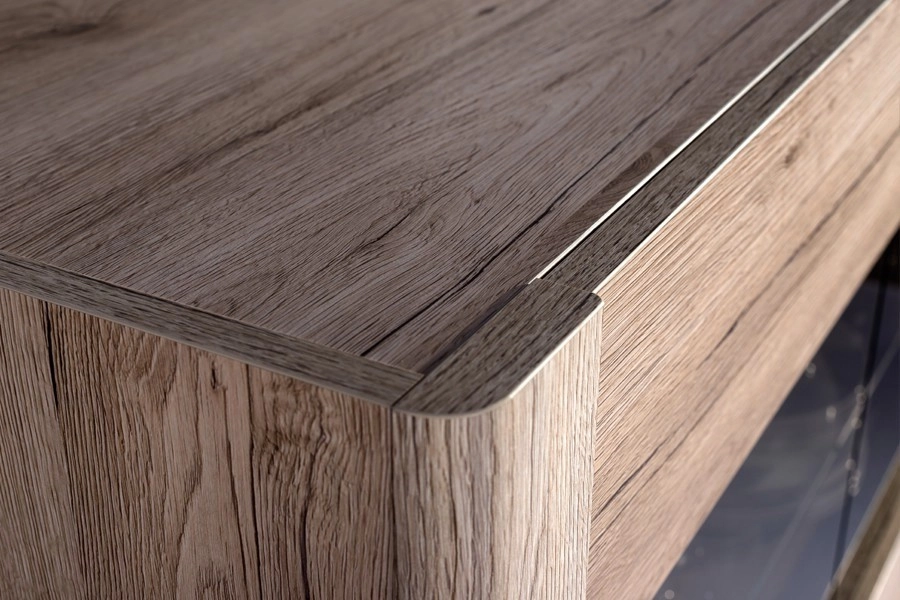 Vyrábí se z vysoce kvalitní dýhované dřevotřískové desky s fólií, sklo je tvrzené s hnědým zabarvením. Dekor s 3D efektem vizuálně dává dojem hlubokého povrchu.
